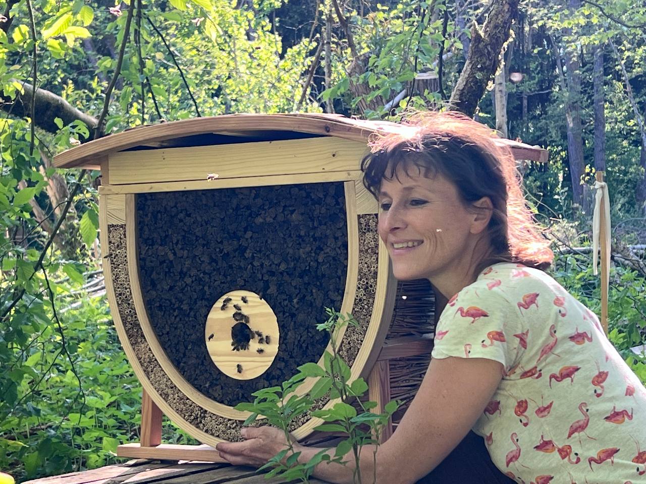 In unserem Waldgarten und in der Baumschule gibt es Platz für weitere acht Völker, die einzeln und mit ausreichend Abstand zu anderen Bienenvölkern leben dürfen. Dort möchten wir ihnen stille, geschützte Orte geben – in den von David Junker entwickelten Bienentürmen sowie in künstlichen Baumhöhlen nach dem Vorbild der Zeidlerei. Wenn du diesen Weg unterstützen möchtest, freuen wir uns über eine Patenschaft für einen Bienenturm oder eine Baumhöhle.